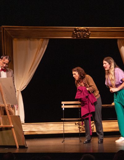 El artista plástico Nacho Suárez realizó hasta siete cuadros originales para la puesta en escena de PERENDI, en la que también contamos con la colaboración de Lidia Otón, una de las actrices habituales del Teatro de la Abadía de Madrid desde los años 90, especialista en coaching y dirección actoral.